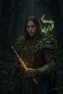Encarna la armonía entre la naturaleza y la magia. El Druida, al ser audaz con su flauta y tener un buen desempeño en la carpintería es un buen protector de bosques y custodio de la vida salvaje, canaliza poderes naturales para atacar, sanar, mimetizarse y controlar el entorno.